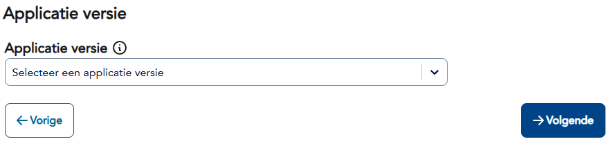 - Versie Selectie (optioneel - alleen bij meerdere versies): Selecteer specifieke versie van de applicatie