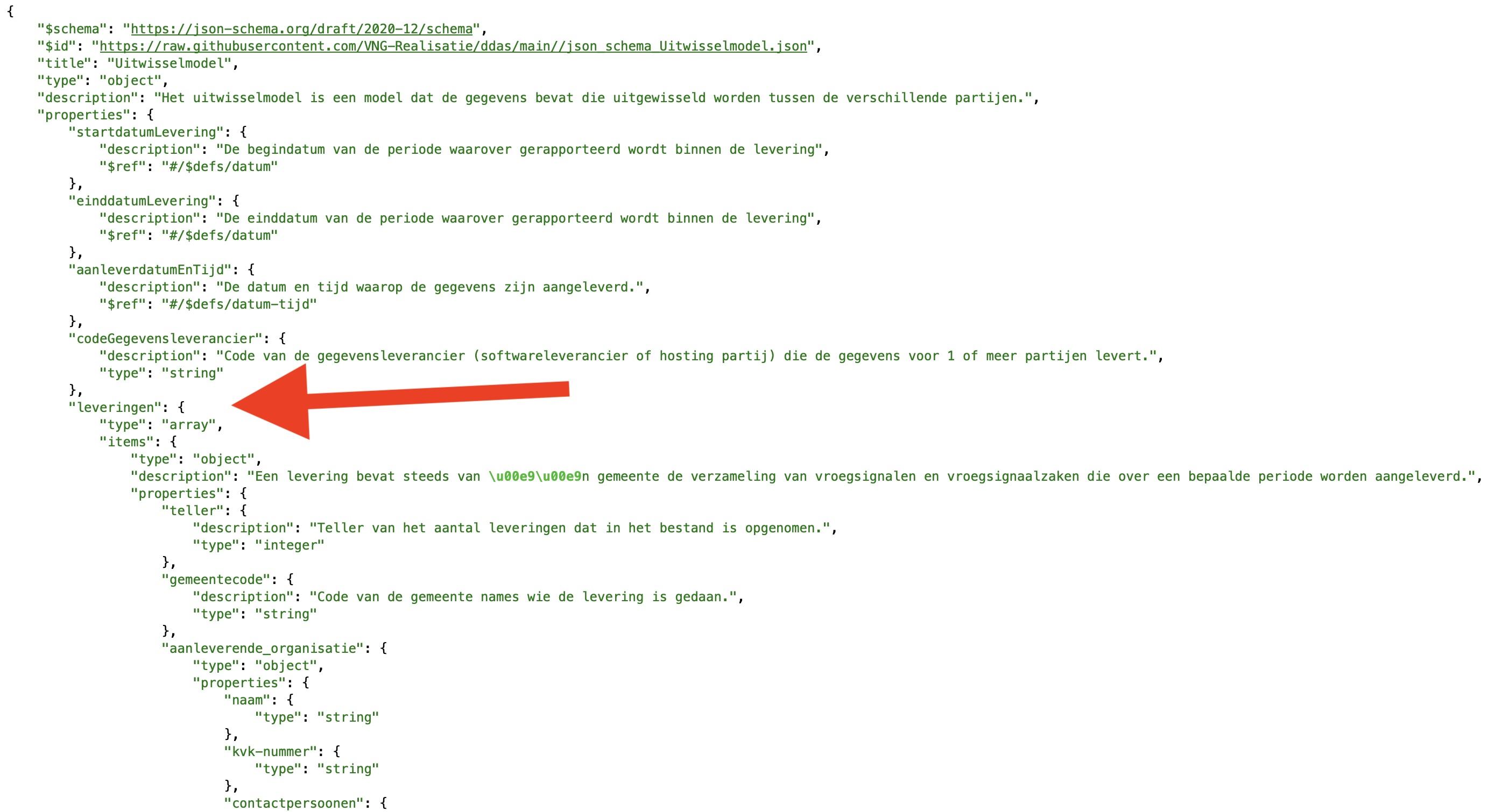 Onderstaand een voorbeeld JSON-bestand conform de uitwisselspecificatie, waarbij meerdere leveringen in 1 bestand zitten. Dit voorbeeld kun je ook downloaden.